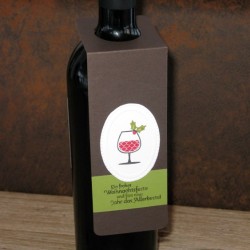 Zum Schluss wird das Motiv nur noch genau um die Kontur herum aus der Metallfolie ausgeschnitten und dann z.B. mit Heisskleber auf eine Flasche aufgebracht (siehe oben).